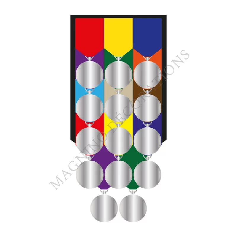 MONTAGE TRADITIONNEL 14 PENDANTES SUR DRAP NOIR AVEC FIXATIONS PIN'S PAR DEFAUT, CROCHET OU VELCRO SUR DEMANDE.