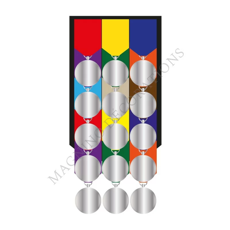 MONTAGE TRADITIONNEL 15 PENDANTES SUR DRAP NOIR AVEC FIXATIONS PIN'S PAR DEFAUT, CROCHET OU VELCRO SUR DEMANDE.