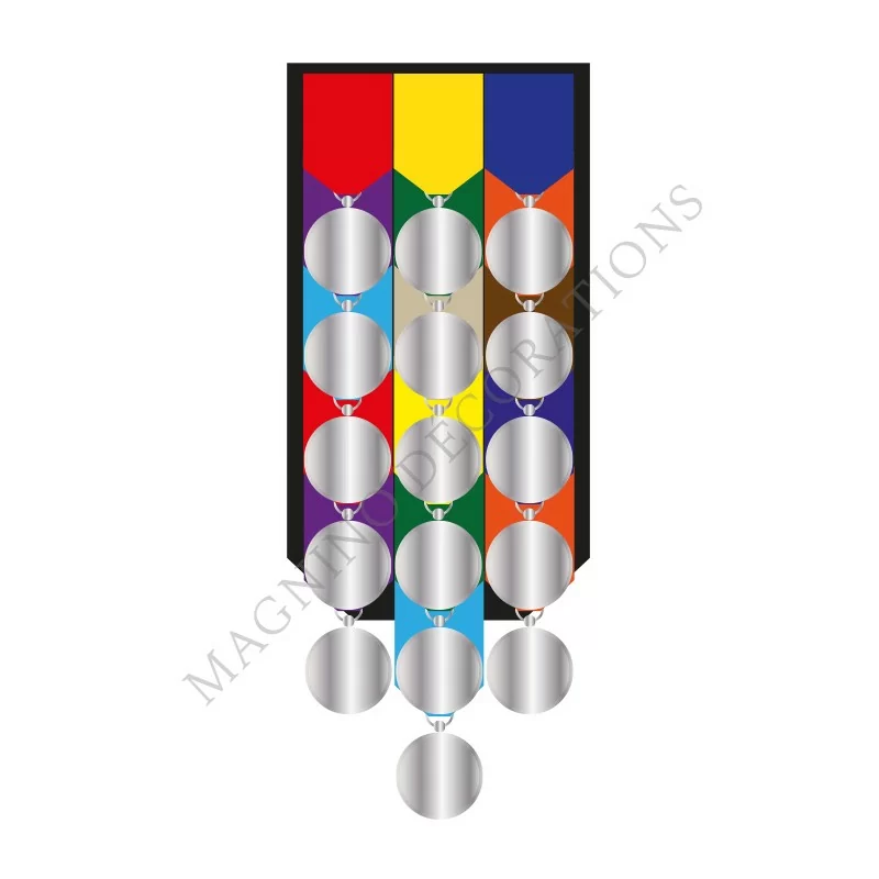 MONTAGE TRADITIONNEL 16 PENDANTES SUR DRAP NOIR AVEC FIXATIONS PIN'S PAR DEFAUT, CROCHET OU VELCRO SUR DEMANDE.