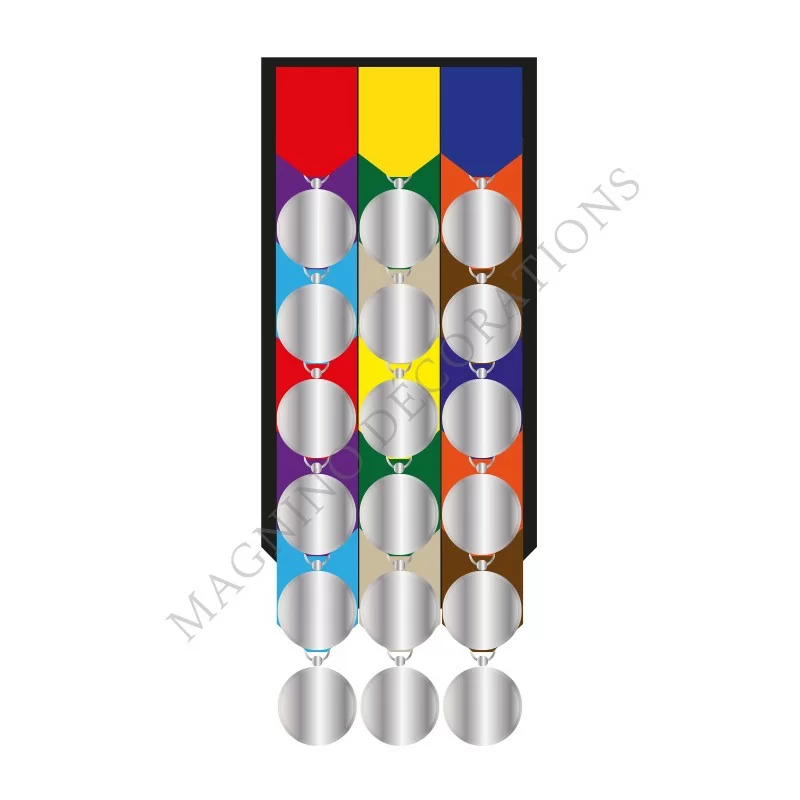 MONTAGE TRADITIONNEL 18 PENDANTES SUR DRAP NOIR AVEC FIXATIONS PIN'S PAR DEFAUT, CROCHET OU VELCRO SUR DEMANDE.