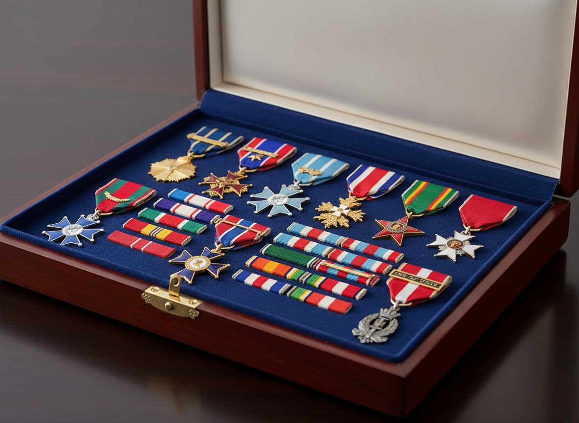 Notre collection couvre les médailles d’honneur, les médailles du travail, les décorations d’unités, ainsi que les distinctions portées par la Légion étrangère. Pour une cérémonie spécifique, notre atelier propose des médailles personnalisées : gravure d’un motif, d’un millésime, d’un sigle ou d’une devise, sur une base classique ou une création inédite. De la petite série à la commande plus importante, nous adaptons format, ruban et écrin.