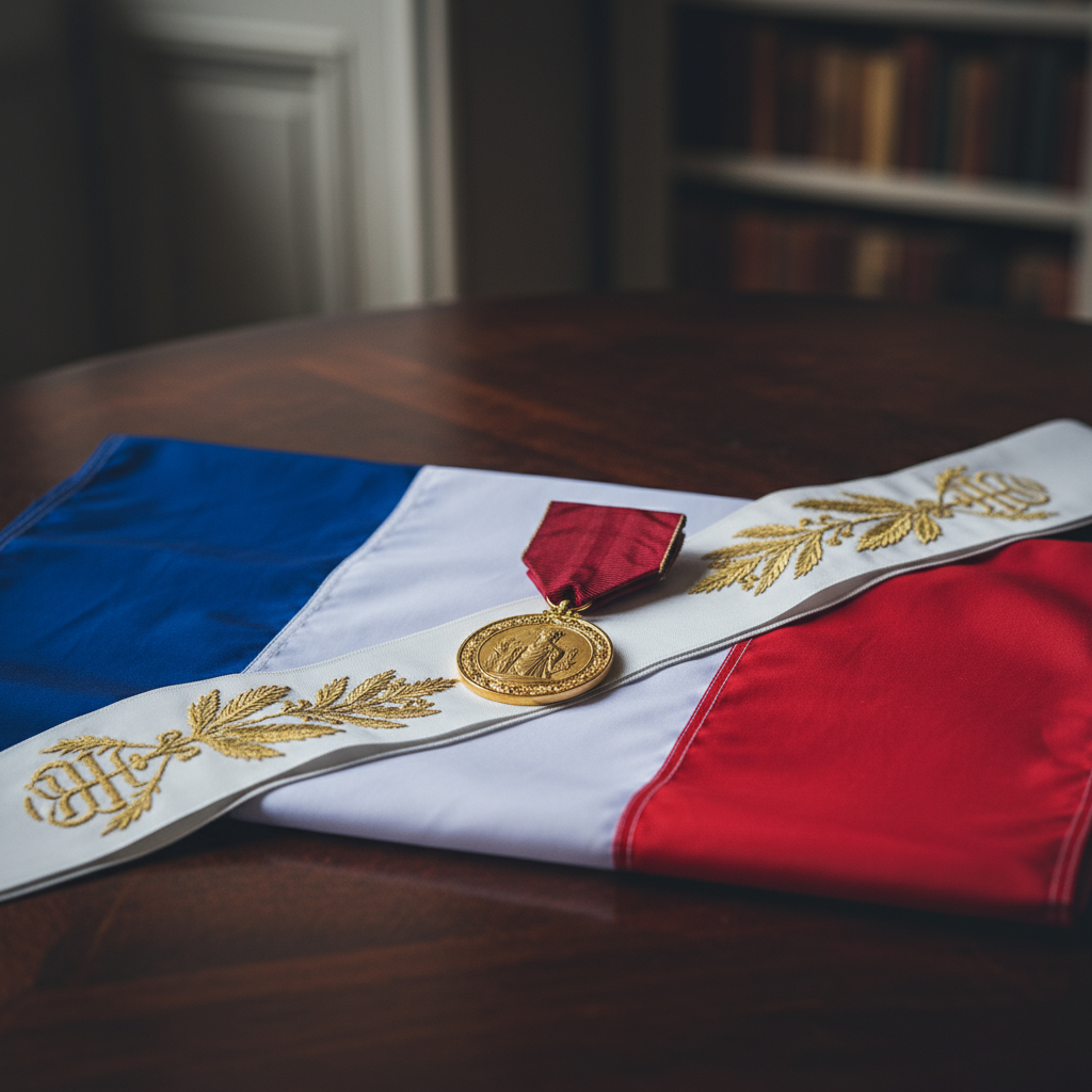 Nous confectionnons des écharpes tricolores pour les maires, adjoints et élus, ainsi que des rubans protocolaires destinés aux inaugurations et aux remises officielles. Les franges, glands et galons respectent les codes en vigueur, pour une tenue irréprochable et une dignité conforme à l’instant.