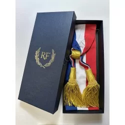 Echarpe destinée au maire d'une longueur de 1,80 m et de 11 cm de large, glands avec franges et passant dorés.